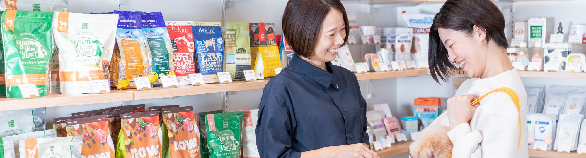 犬に携われる仕事につきたいと思い、専門学校に入学。ドッグトレーナーコースを専攻しましたが、犬のことを学ぶにつれて犬の食事の大切さに気づき、食事を通して飼い主様のお役に立ちたいという新たな思いが芽生えてきました。そんなときに専門学校が開催する企業説明会に参加し、「ここで働きたい!」と思ったのを覚えています。