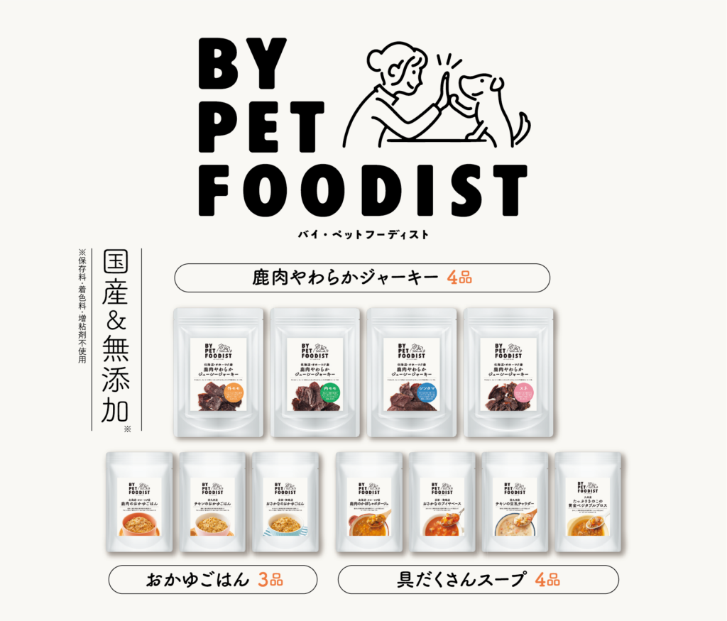 ペットフーディストたちの声から生まれた『BY PET FOODIST』。気軽&手軽に使える愛情たっぷりごはんを通してパートナー(愛犬)の喜び・健康・笑顔を願うオーナー(飼い主様)に寄り添います。